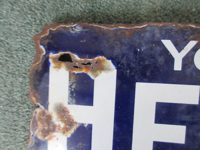 Original small enamel sign Yorksire herald blue background with white writing. In used condition.