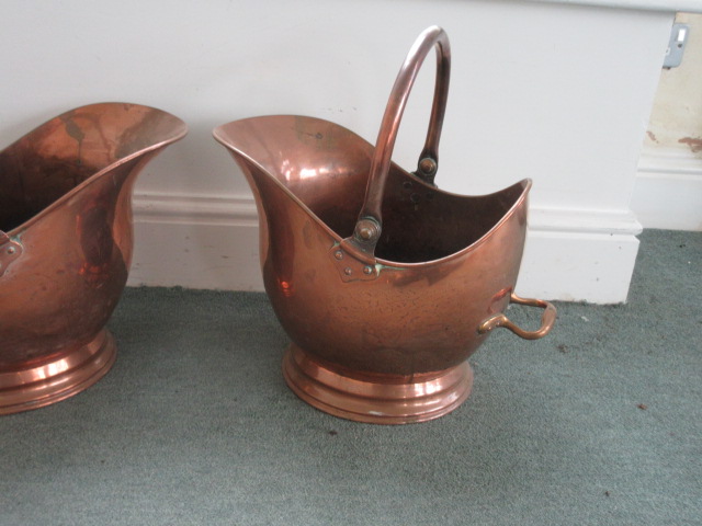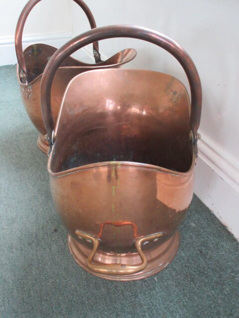 Pair Heavy Quality Victorian Copper Coal Helmets