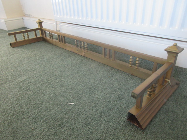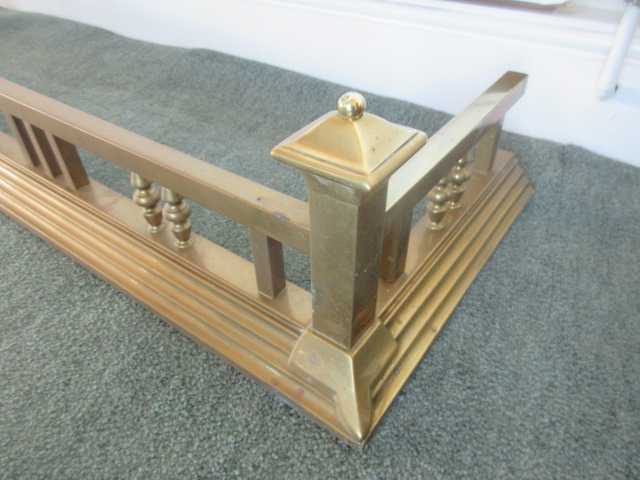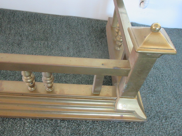 Heavy quality Edwardian Brass Fender with tall sqaure corners, turned supports in the frame.