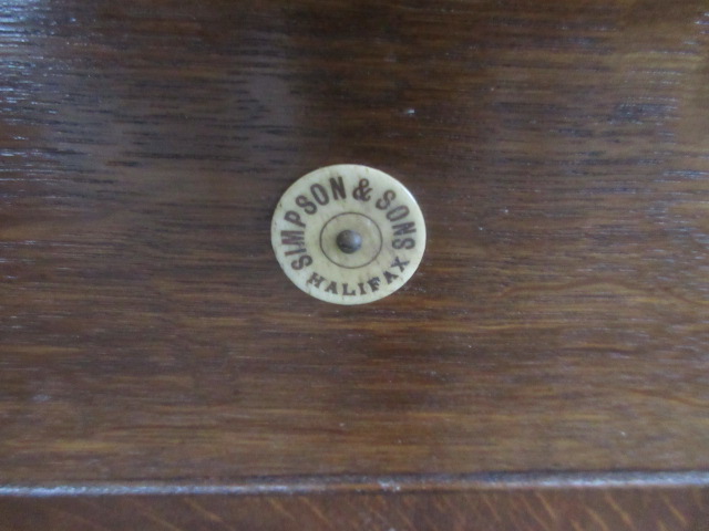 Oak one drawer cupboard by maker Simpson & Sons Halifax.