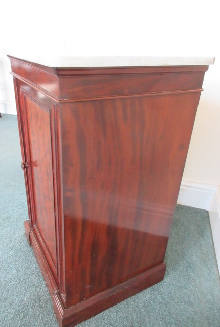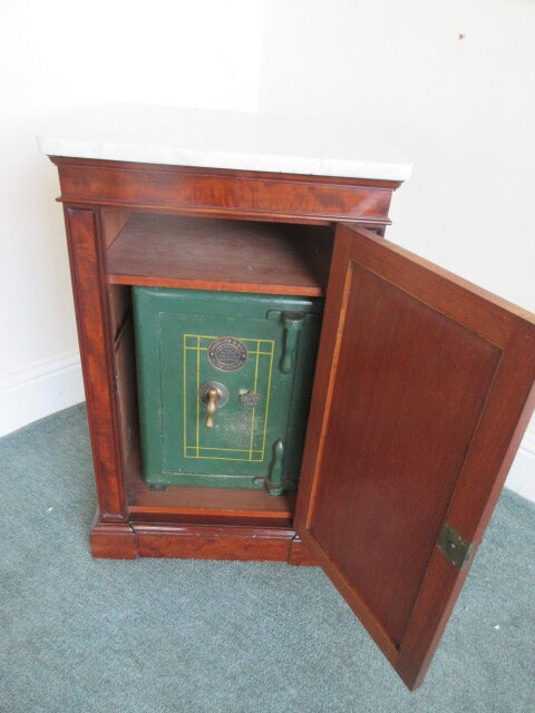 Safe in Victorian Mahogany cabinet with marble top, Safe is by Phillips & Sons Birmingham. Circa 1870.
