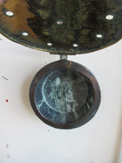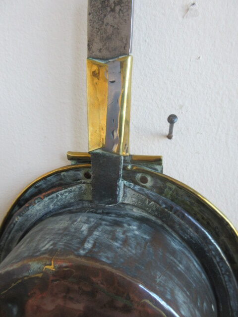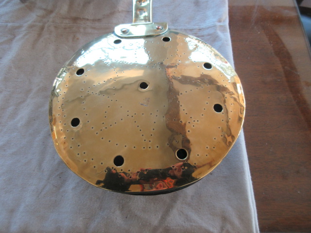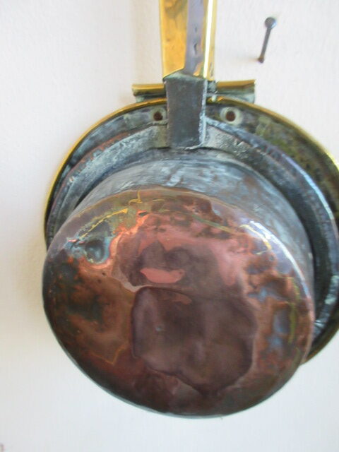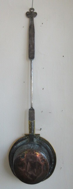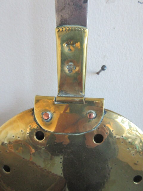 Georgian Brass & iron cot warmer with fish tail joint, copper back.