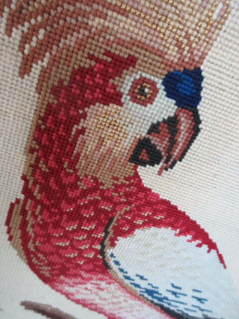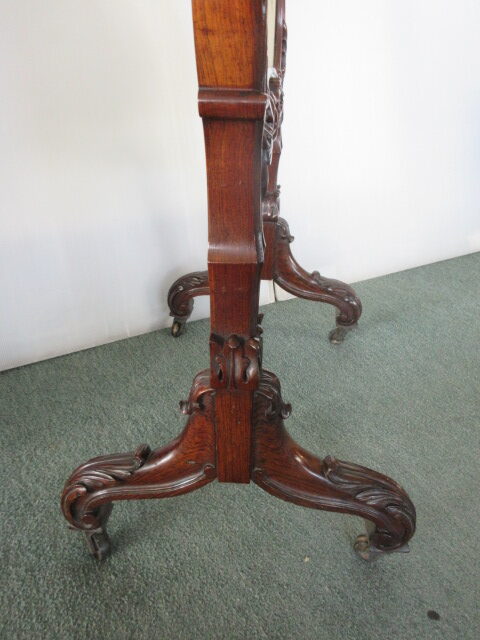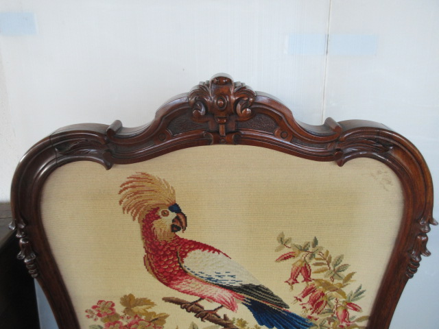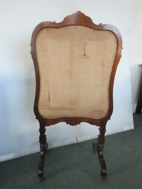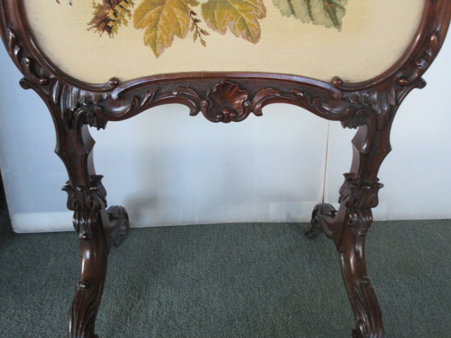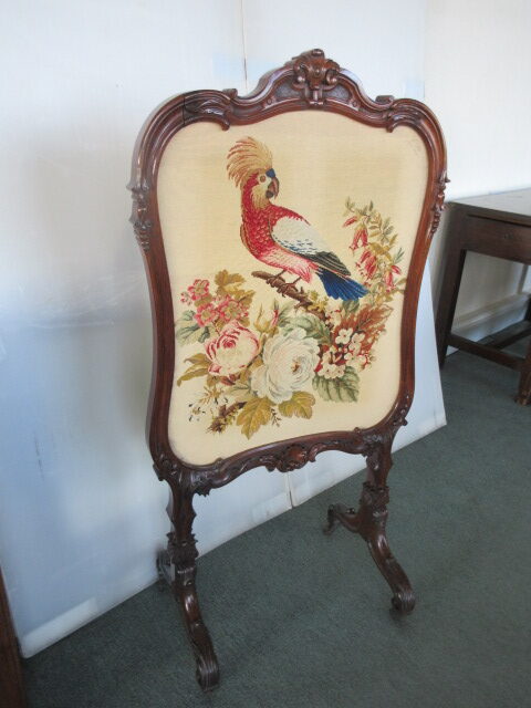 Victorian Rosewood tapestry screen. Very well carved with a tapestry bird in the middle.